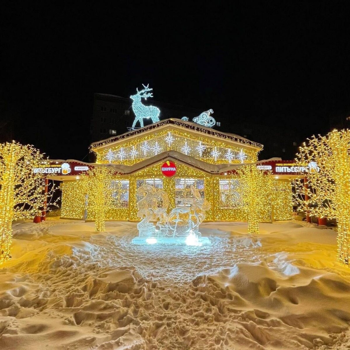 В Ижевске есть пивной магазин «Питьсбург», который каждый год уделывает целые города по части новогодней иллюминации.