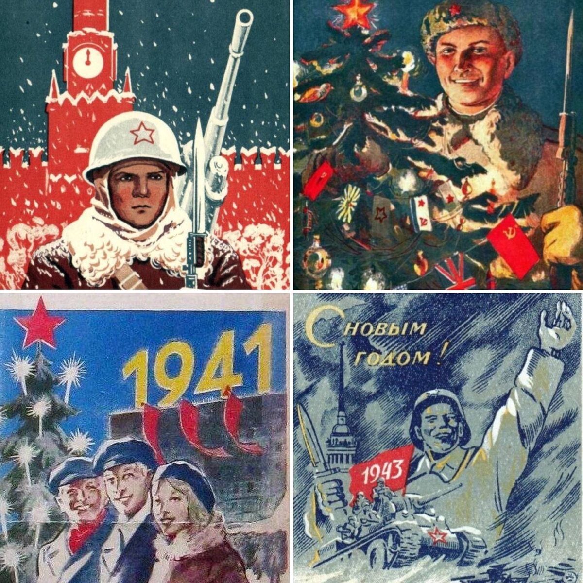 Советские новогодние открытки военных лет