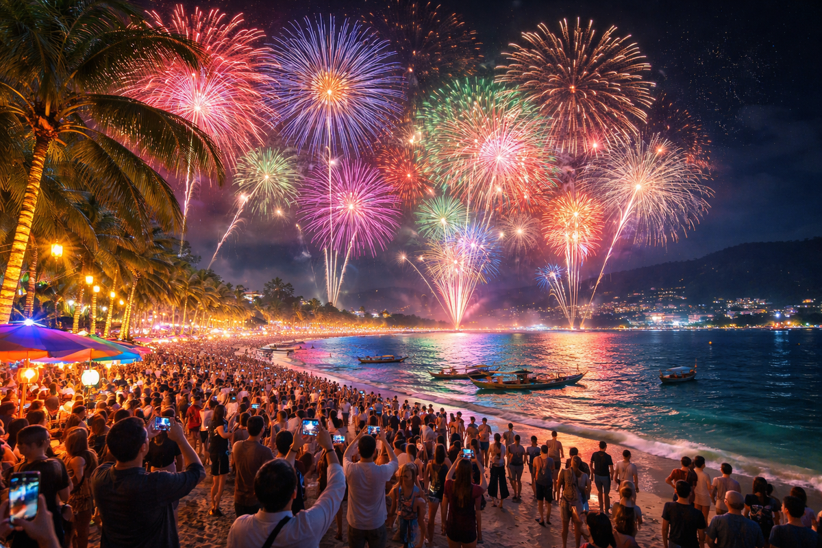 Новогодняя ночь на Пхукете — это всегда яркое шоу: пальмы, море, жара, музыка и салют над водой. Если вы впервые встречаете Новый год на острове и хотите выбрать точку с лучшим видом, вот самые популярные и интересные места, где точно не прогадаете. Патонг в Новый год превращается в огромную танцплощадку.