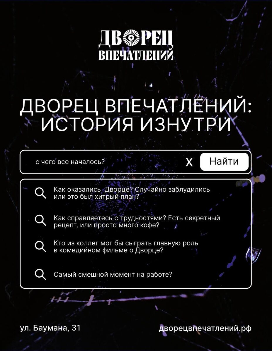 ✨ Мы решили узнать, что вдохновляет нашу команду и какие моменты они считают самыми запоминающимися в Дворце впечатлений
