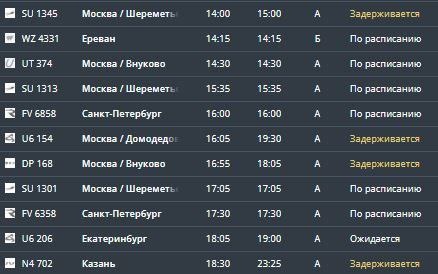 На 1,2 скриншоте — ситуация с вылетами, на 3,4 — с прилетами. В Ставрополе проблем с рейсами нет.
