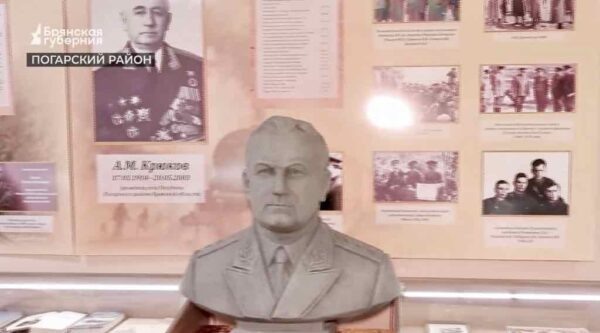 В торжественной обстановке коллекция погарского музея «Радогощ» пополнилась уникальным экспонатом — бюстом генерал-полковника Алексея Крюкова, которого на его малой родине в Погарском районе с уважением называют «наш генерал». Уроженец села Посудичи, Алексей Крюков посвятил 45 лет службе в железнодорожных войсках, был удостоен 27 государственных наград, девять лет руководил строительством БАМа и участвовал в возведении объектов в родном районе, запомнившись землякам своей скромностью и отзывчивостью. Депутат Государственной Думы Олег Матыцин, организовавший доставку гипсового бюста из Брянска в Погар, передал его музею в предновогодние дни. В ходе церемонии гостям рассказали о жизненном пути и заслугах прославленного земляка, знаниями о котором уже владеют даже местные школьники. Подробности в сюжете «Брянской Губернии». Фото: скриншот видео «Брянская Губерния»