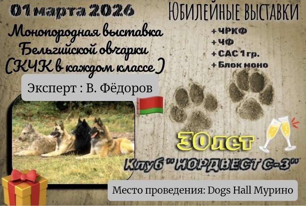 !!! ⭐️ До 31 декабря! 💥Льготная запись на выставки 01.03.26! ✅️Сертификатные классы 1800 р ✅️Беби, щенки, ветераны 1500 р Монопородная выставка Бельгийской овчарки 2026! Эксперт: Валентин Фёдоров 🇧🇾 Четыре выставки в один день! Успейте записаться!