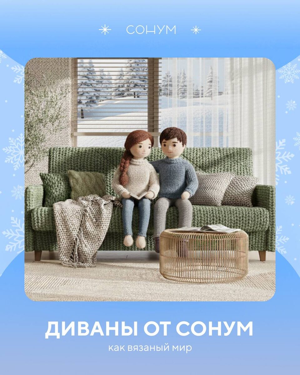 ? Предлагаем вам сделать небольшую паузу на 15 минут: заварите себе ароматный чай, расслабьтесь и насладитесь волшебной атмосферой новогодней суеты и чудес! 😍 А еще не упустите возможность взглянуть на вязаные диваны от Сонум! Это настоящее волшебство, которое добавит уютных эмоций в этот прекрасный день
