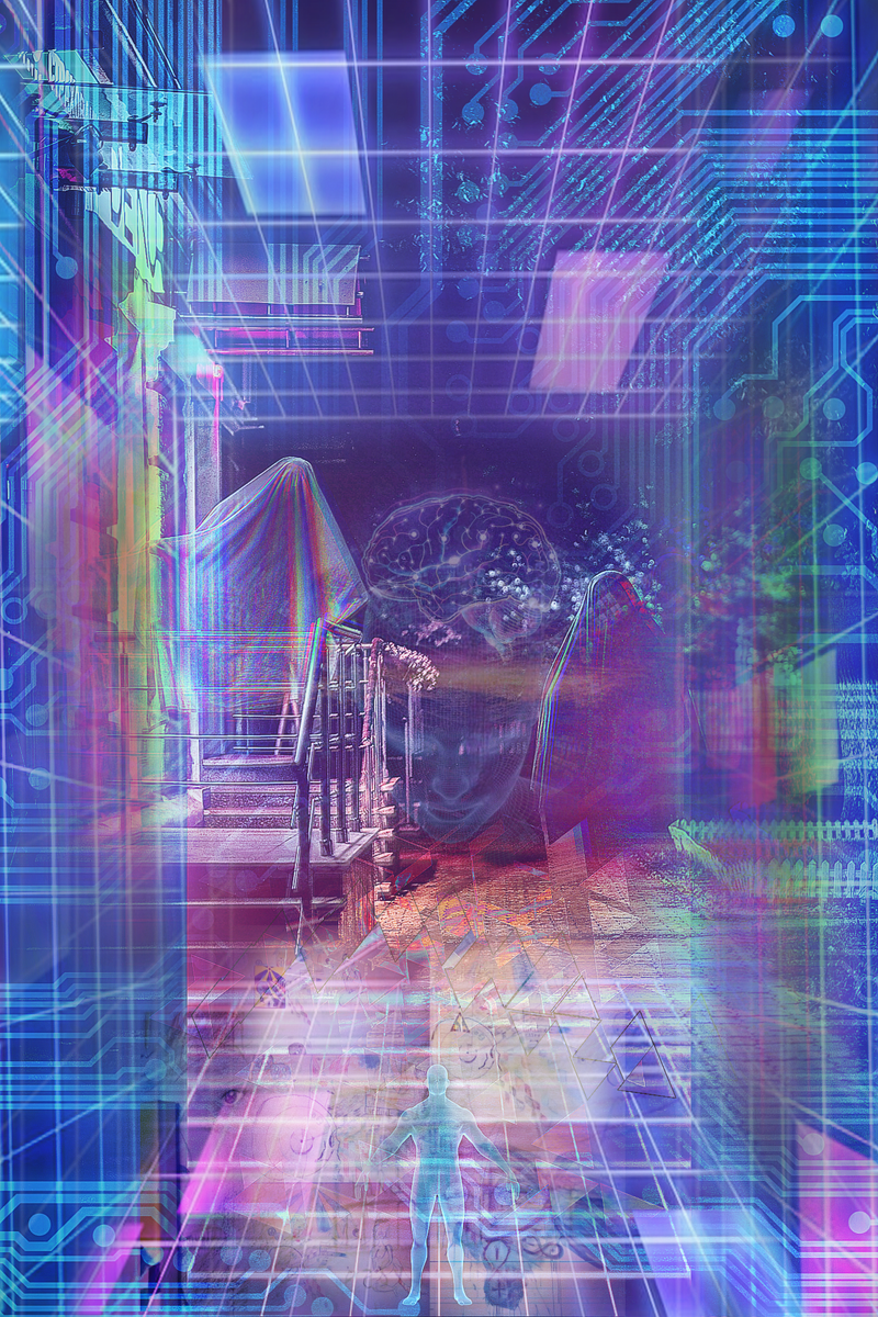 Я не был свидетелем массового наблюдения , но не могу отрицать этот факт, так как есть программы подсознания, которые объединяют группы людей. В другой деревне я наблюдал НЛО, которое в другое время видели комбайнеры над пшеничным полем. Мой код, или призрак которого я наблюдал, нёс в себе индивидуальную информацию. Сначала меня разбудил яркий свет посреди ночи. Это похоже на то, когда смотришь на солнце закрытыми глазами и твои веки наполняются красным цветом. Открыв глаза я увидел в стене перед собой тоннель, от куда не спеша в перспективе пространства шла человекоподобная фигура . Удивительно, что у неё не было лица. Длинные , распущенные, волнистые волосы и белый хитон. Оно шло медленно. На мгновение я закрыл глаза, так как ещё не проснулся до конца и не совсем понял ,что это происходит со мной в комнате , где ещё спали мама с маленьким братом. Когда вдруг до меня дошло , что что-то не так, я резко присел и увидел уже иной образ . Я уже не видел тоннель и ту первую фигуру . Передо мной, на высоте одного метра над полом, шла голограмма девушки , идентифицированная мною как "какая то тётя",с собранными волосами и лицом. Она улыбнулась и посмотрела на меня, когда заметила ,что я смотрю на неё. Я не испытал ужас, вопреки всему , я словил лёгкий испуг. Она повернулась в сторону мамы и младшего брата и тоже улыбнулась,после того как посмотрела на них. От испуга я начал кричать , чтобы разбудить маму . Когда мама проснулась , являясь свидетелем моего испуга , она ничего не увидела , в то время как я продолжал наблюдать, как голограмма девушки шагает дальше по комнате. Будто проходила мимо . Почему я называю её голограммой, так это потому ,что её стопы ног плавным градиентом уходили за видимый спектр и внизу платья появлялись, мерцая и переливаясь, серебристо чёрные прямоугольники, как пиксели . Я видел ,что её платье шевелится из-за динамики шагов , но платформа , по которой она шла на высоте одного метра, уходила из поля видимого спектра. Это было в ночь на 7 января. Никакой религиозной символики или атрибутики это явление не несло .