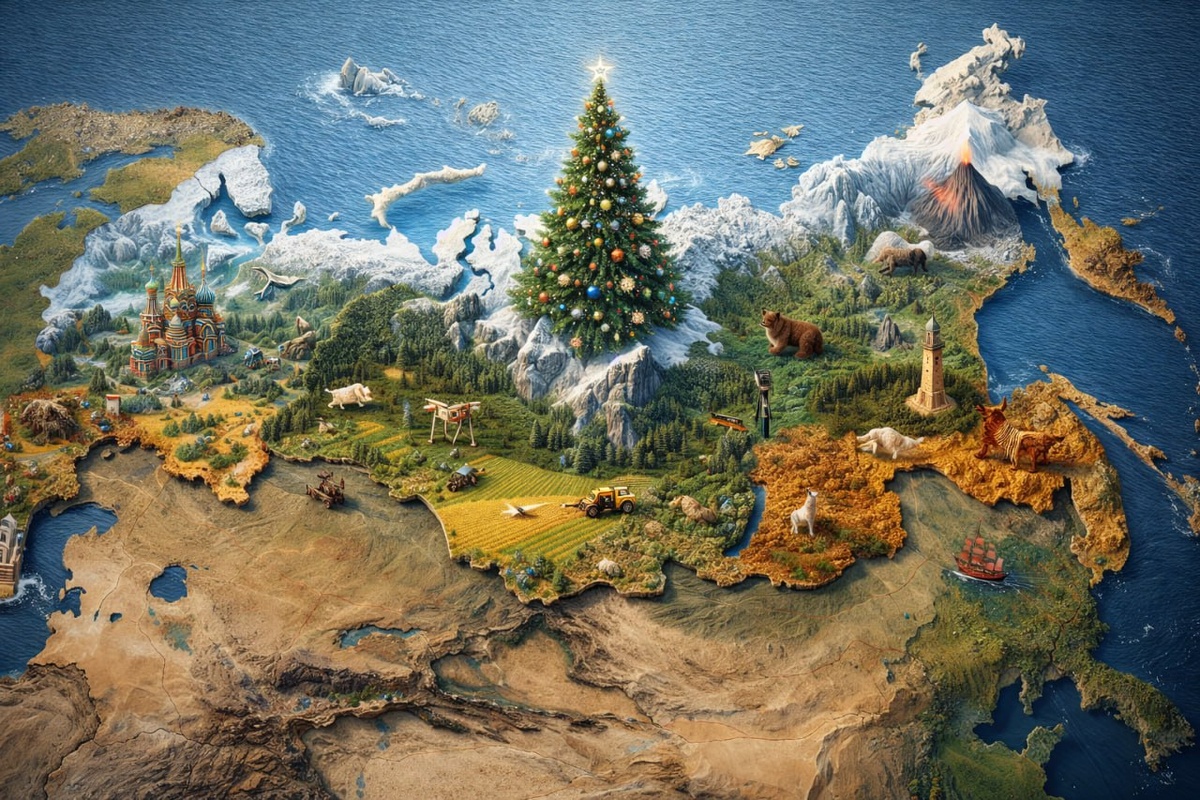 ⌛ Россия раскинулась на двух континентах на 9 тысяч километров, и Новый год шагает по стране через несколько часовых поясов: пока на долготе