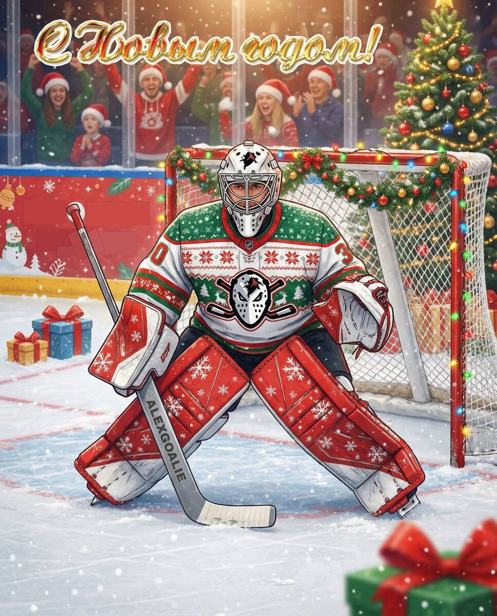 ! 🏒 🎉 Быть вратарем — это не просто позиция на льду, это характер. Желаем нашим голкиперам в новом году стальных нервов, «кошачьей» реакции и уверенности, которая передается всей команде. 🤜🏻🤛🏻 Родители, вы — главные тренеры за пределами льда. Пусть ваши дети радуют вас прогрессом, а в доме всегда будет атмосфера победы! 🏆 Пусть все шайбы летят в ловушку, а невзгоды — мимо ворот. 🥅 С наступающим праздником! 🎄🎄 Команда ALEXGOALIE 🌟