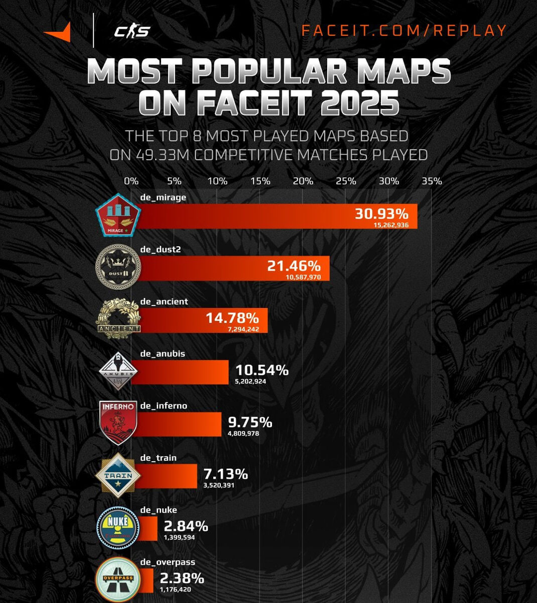 πΊ Mirage β ΡΠ°ΠΌΠ°Ρ ΠΈΠ³ΡΠ°Π΅ΠΌΠ°Ρ ΠΊΠ°ΡΡΠ° Π½Π° FACEIT Π² 2025 Π³ΠΎΠ΄Ρ