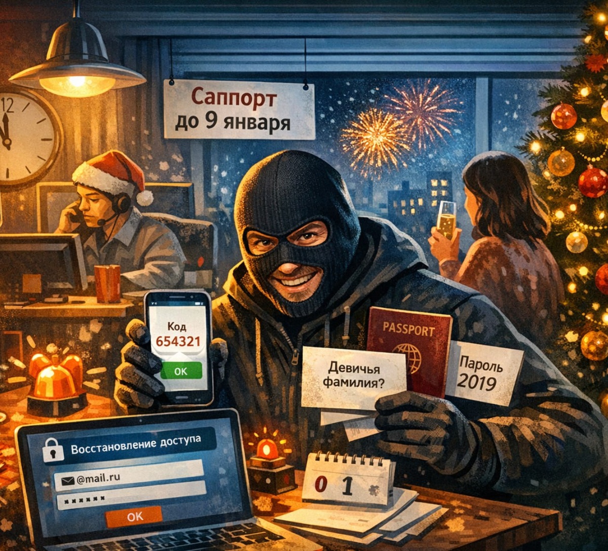 ) (сохраните и перешлите близким) Праздники — время, когда вас будут атаковать. Не взломом пароля, а через "восстановление доступа": мошенник выдаёт себя за вас, получает код или меняет контакт — и аккаунт его. Базовые правила: 1) Проверьте, как восстанавливается доступ к аккаунту • Посмотрите настройки безопасности всех важных сервисов: электронной почты, банка, госуслуг, онлайн-магазинов. Найдите раздел "Восстановление доступа" или "Как вы можете войти, если забудете пароль". • Посмотрите, какие способы там указаны: SMS, резервный email, секретные вопросы, поддержка, резервные устройства — это слабые места, куда будут давить атакующие 2) Почта — основа защиты • Включите двухфакторную защиту (2FA) на основной почте • Удалите резервные email/номера, которые уже не контролируете • Проверьте: нет ли пересылки на чужой адрес и незнакомых устройств/сессий 3) Один email на всё = единая точка отказа • Заведите отдельную почту для Госуслуг и важных сервисов, чтобы восстанавливать доступ