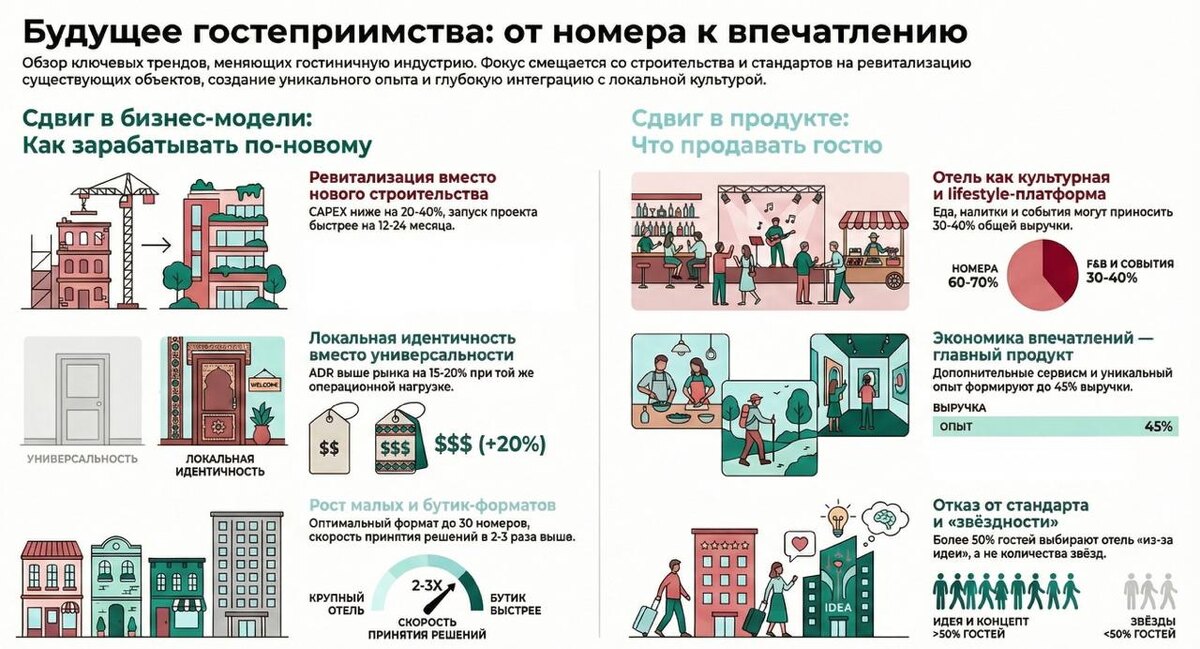 Дорогой друг! Сделал для тебя подборку самых важных трендов и изменений в девелопменте гостеприимства, в одной картинке. Спасибо, что этот год был со мной. Хочу пожелать тебе благополучия в году 2026-ом. И минимум двойного роста во всем. А также, больше новых знакомств и партнерств. Ведь благодаря новым знакомствам рождаются самые необычные и интересные проекты, которые меняют этот мир. От себя скажу, что в новом году буду рад познакомиться с каждым. Может именно с тобой мы сделаем то, что перевернет привычное представление.