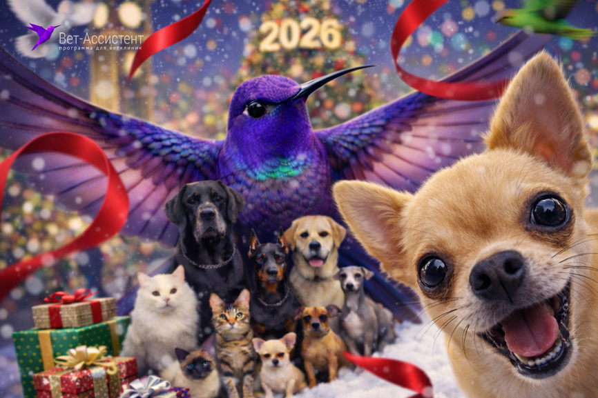 С Новым 2026 годом! Спасибо, что в 2025 году вы были с Вет-Ассистент. Пусть новый год принесёт спокойную работу, уверенность в каждом решении и ощущение, что вы всё делаете правильно.