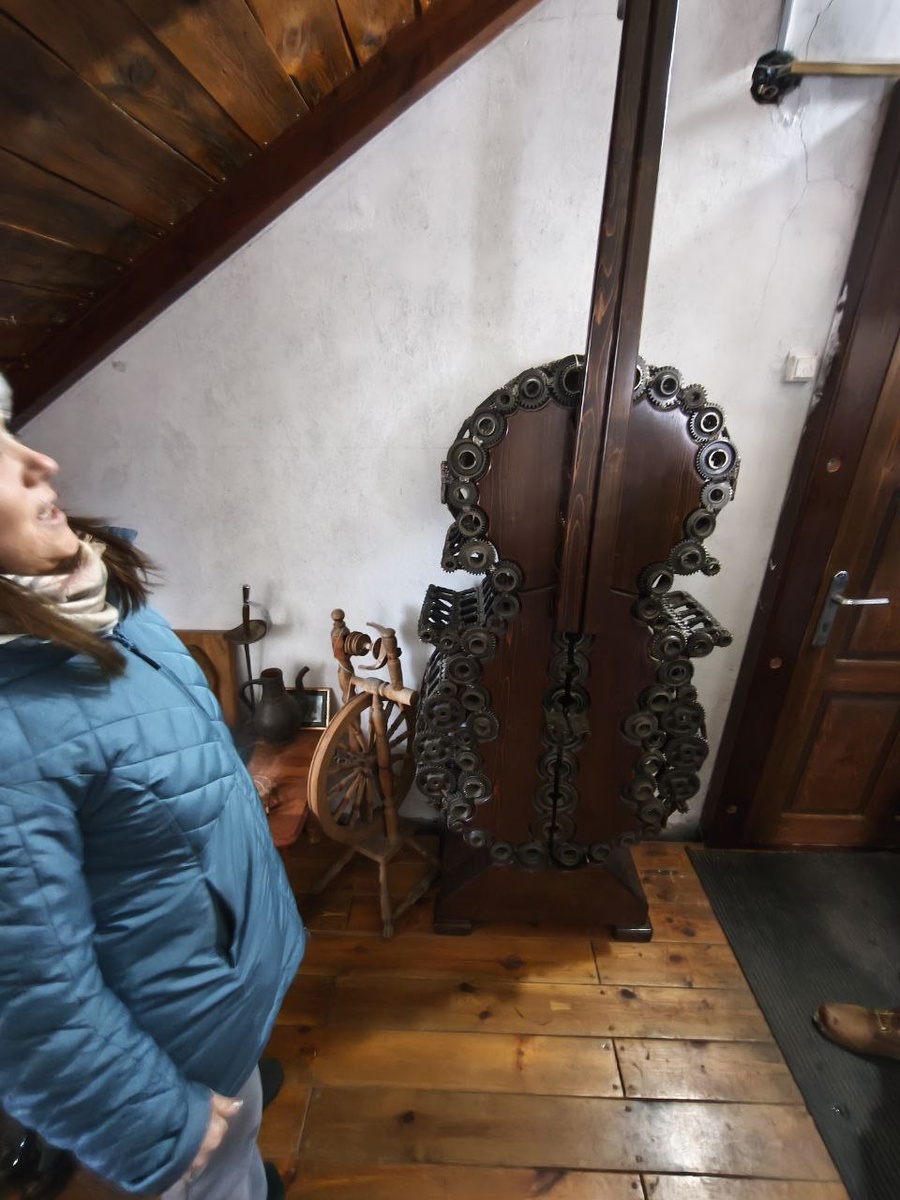 Внутри дома и на втором этаже другая часть экспозиции находится на втором этаже дома. Здесь можно заметить, что хозяин прекрасно работал не только с металлом, но и с деревом.