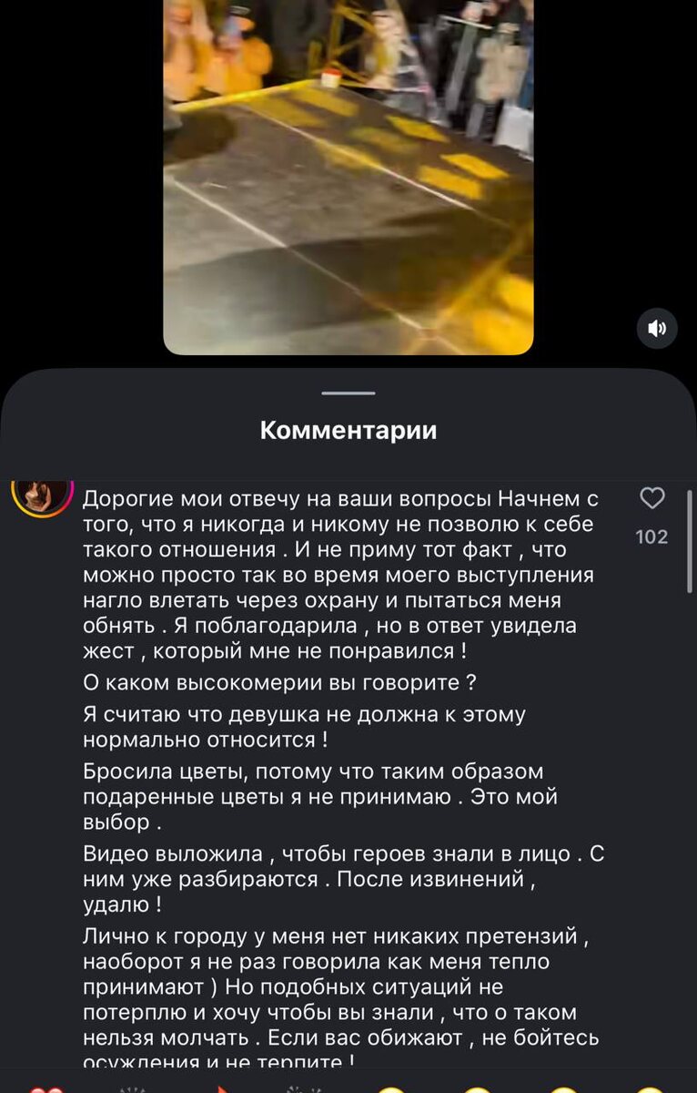 Во время концерта один из зрителей попытался подойти к артистке с букетом, обойдя охрану и стремясь обнять её прямо во время выступления. В ответ Саби кинула на сцену. Позже певица выложила видео с этого момента и объяснила свой поступок. По её словам, подобные действия со стороны зрителей являются нарушением личных границ, а во время концерта подход к артисту через охрану недопустим по соображениям безопасности. Видео, как отметила Саби, было опубликовано для того, чтобы человек, подаривший букет, увидел ситуацию и задумался. Однако в комментариях под публикацией реакция оказалась резкой. Многие жители Беслана и республики восприняли поступок артистки негативно, посчитав его неуважительным, и обрушились с критикой в адрес певицы. Ситуация вызвала широкий резонанс и разделила мнения: одни поддержали право артистки на личные границы и безопасность, другие — сочли её реакцию чрезмерной и неуместной для местной публики. Саби известна по хитам «Базовый минимум» и «Я твой стресс». (@new