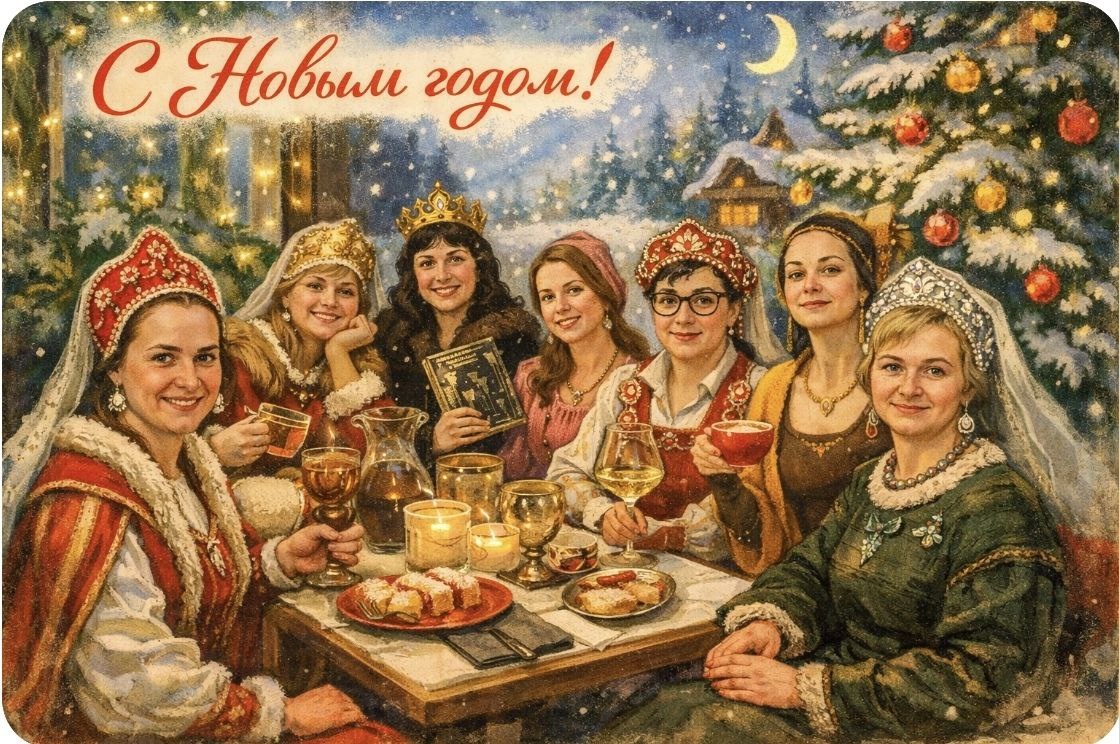 С наступающим Новым годом! 🎄 Пусть в грядущем году нам удастся поймать свою «Золотую рыбку» — и при этом не схлопотать «Горе от ума», загадывая слишком умные желания. Пусть «Синяя птица» счастья не пролетит мимо, а если и залетит — то прямо на «Завтрак у Тиффани», чтобы жизнь стала чуть ярче, чем обычно. Пусть работа спорится легко, как у героинь «Девчат», письма доходят вовремя, как в романе Франчески Джаннони «Почтальонша», а страсти кипят не сильнее, чем у «Леди Макбет Мценского уезда» — без лишних трагедий и с хорошим финалом. И даже если вдруг окажемся в обстоятельствах, похожих на «Отель у Погибшего альпиниста», пусть выход найдётся быстрее, чем кажется. Желаю, чтобы судьба щедро выдавала «Большие надежды» и регулярно подтверждала их исполнение. Пусть время будет к нам благосклонно, как в книге Анны Матвеевой «Каждые сто лет», а верность, честь и любовь близких — на уровне «Капитанской дочки». Это было краткое описание минувшего книжнеклубного года. 😉 С Новым годом! Пусть