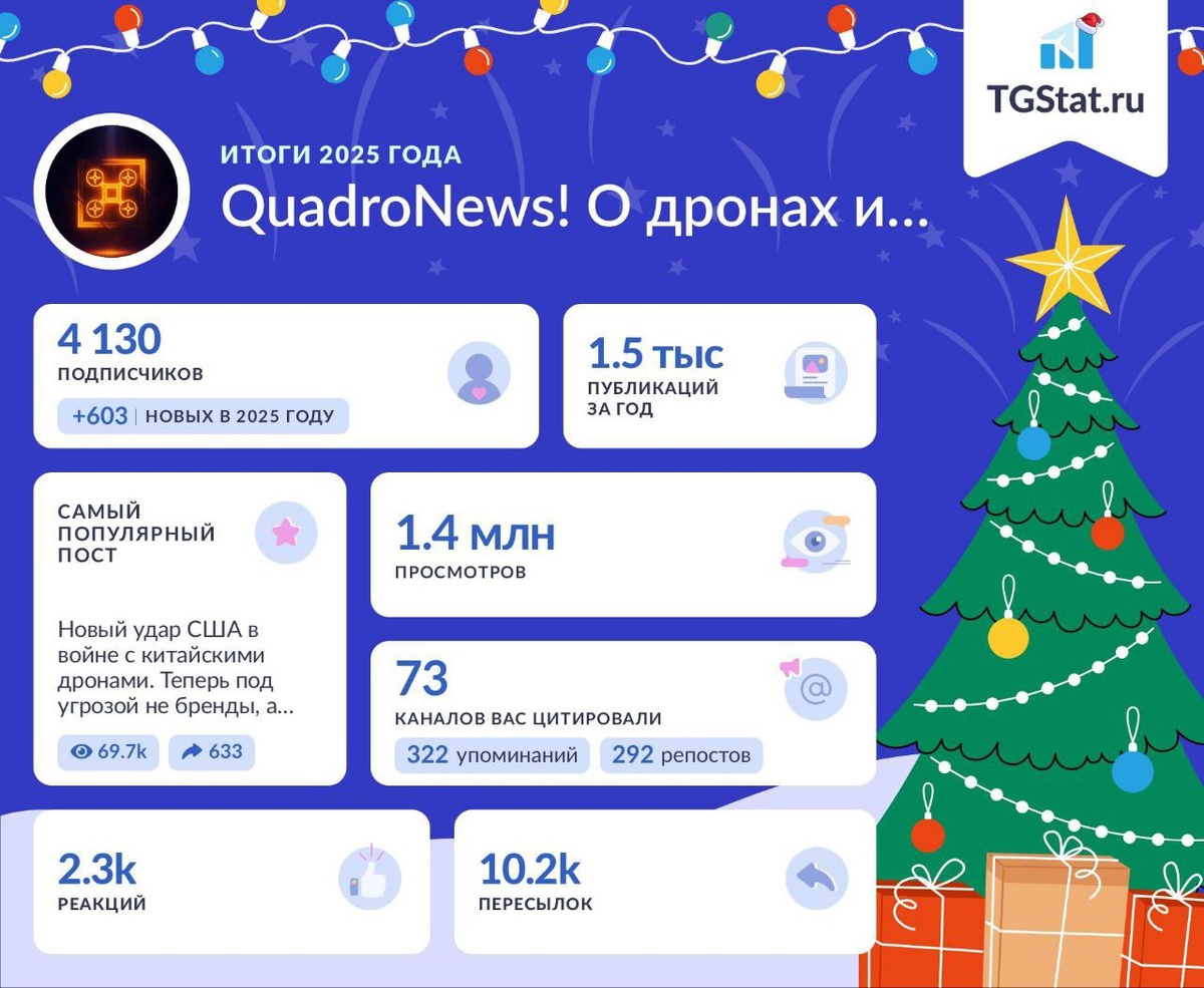 ! Вот и финишная прямая 2025 года. Оглядываясь назад, хочется сказать одно большое СПАСИБО. Не будем скрывать, этот год выдался для нас непростым. Мы столкнулись с непредвиденными техническими трудностями, из-за которых не всегда получалось публиковать посты так часто, как хотелось бы. Честно скажем: проблема пока решена не до конца, но мы активно работаем над ее устранением и ищем выход. Спасибо, что отнеслись с пониманием и остались с нами! Спасибо за вашу активность, за то, что помогаете нам держать руку на пульсе дрон-индустрии. Мы растем благодаря вам. 🙏 Пусть наступающий 2026 год (год Огненной Лошади 🐎🔥) принесет вам стремительный рост, новые высоты и яркие эмоции. Желаем вам здоровья, тепла в семье и финансовой возможности покупать все те новинки, о которых мы пишем! 😄 ⚠️ Важное объявление: Администрация канала берет заслуженную паузу. Нам нужно немного тишины, чтобы перезагрузиться и вернуться к вам с новыми эксклюзивами (и, надеемся, уже без технических сбоев). Всем