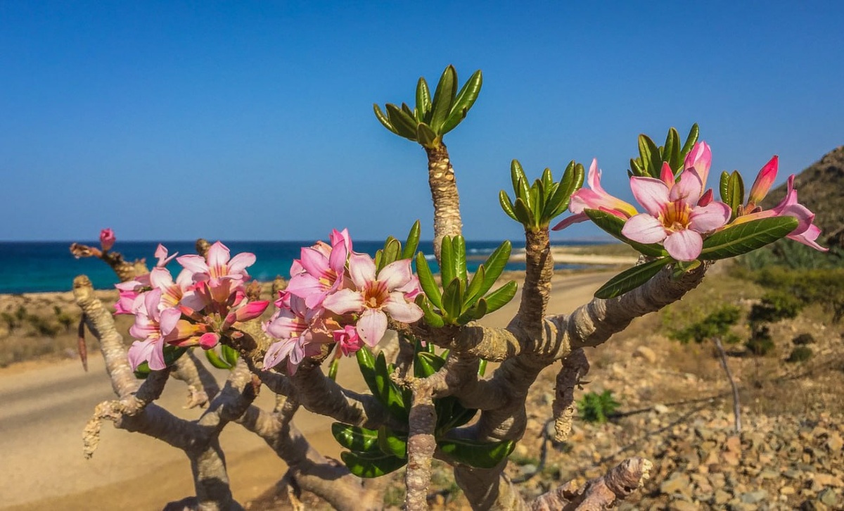 Цветущие деревья на Сокотре. Сокотра -главный остров одноимённого архипелага, принадлежащего Йемену. Там растут эндемики- драконовое дерево и бутылочное дерево. Эти виды не встречаются больше нигде на Земле. Драконовое дерево Название дерево получило из-за смолянистого сока кроваво-красного цвета «драконовой крови». Крона напоминает вывернутый наизнанку зонтик с толстыми ветвями. Листья кожистые, заострённые, длиной до 30–60 см. Цветки с простым околоцветником, состоят из шести листочков. Дерево цветёт раз в 15–20 лет. Цветы, как правило, растут на концах ветвей. Бутылочное дерево имеет толстый ствол, напоминающий бутылку. В период цветения толстые ветви-обрубки внезапно покрываются ярко-красными цветами в феврале-марте, а на несколько недель лета - зелёной листвой. Остальное время года деревья стоят совершенно голые. Сокотра одно из немногих мест в мире, где произрастают благовония, в том числе ладан. Ладан - это смола, которую собирают с различных видов дерева, обозначаемого бота
