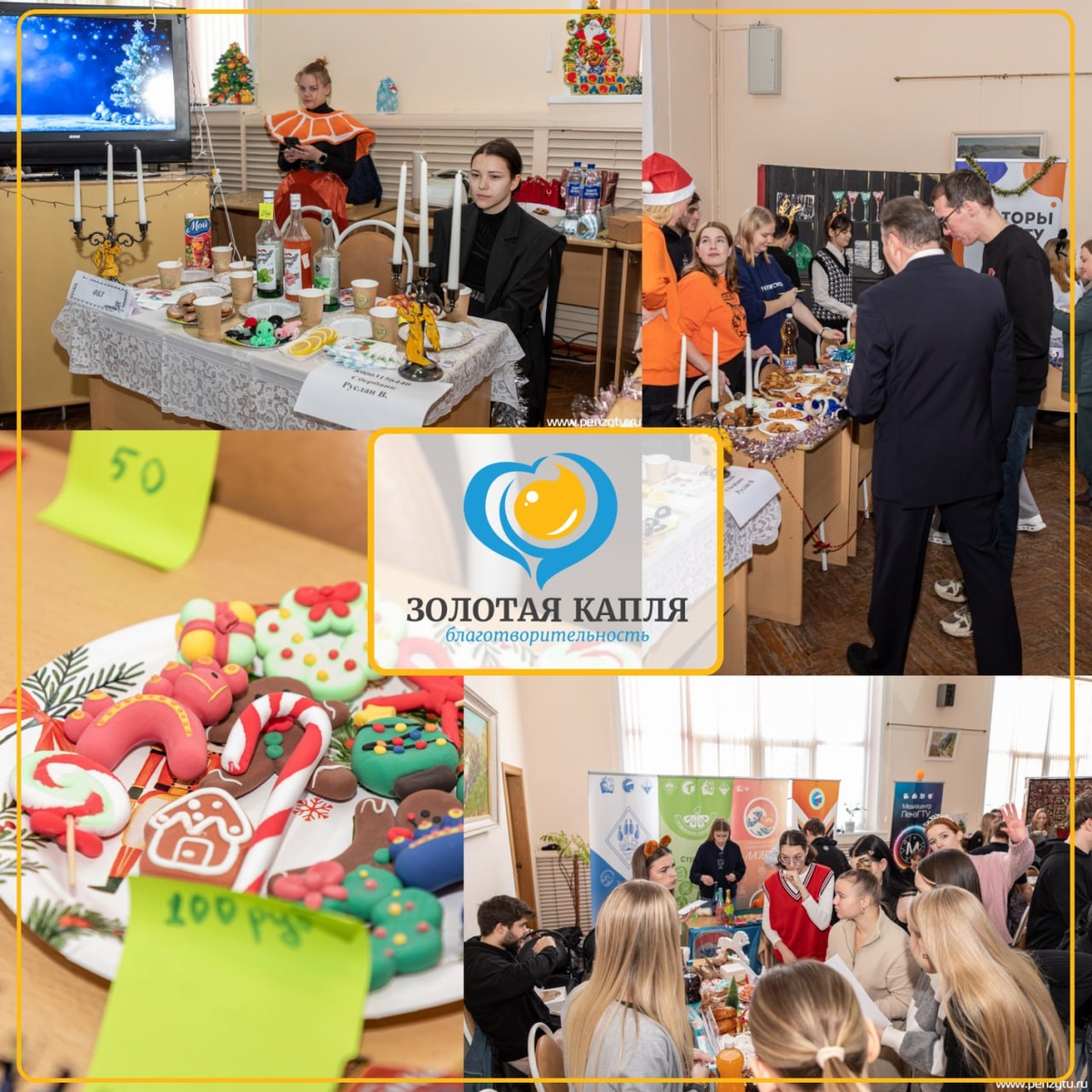 ! 🎄✨ Друзья, в канун Нового года случаются самые тёплые чудеса! И одно из них - это традиционная благотворительная ярмарка, которую вот уже несколько лет организуют студенты ПензГТУ Все собранные от продажи поделок и угощений средства студенты направили на новогодние подарки для наших подопечных. Итог вашей щедрости и энергии - ошеломляющий! Благодаря всем, кто пришёл, участвовал и покупал, удалось собрать 30 270 рублей! 💬«Это наше совместное решение с фондом «Золотая капля», – рассказывает руководитель волонтерского центра «Мы вместе» Руслан Валиуллин. – Мы давно сотрудничаем с реабилитационными центрами и знаем, как важно поддержать детей и их близких, как ценят они искреннее общение и простые подарки от души».