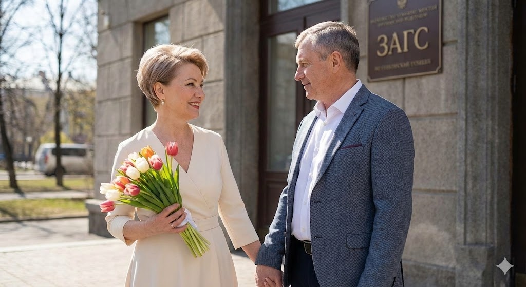 Весна в этом году была ранняя и бурная. Елена и Андрей выходили из ЗАГСа. На Елене было элегантное кремовое платье, в руках — букет тюльпанов. Это была скромная регистрация, только для двоих.