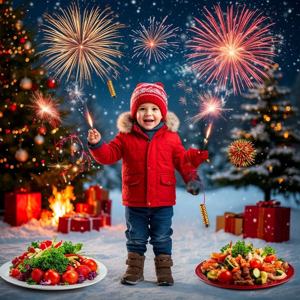 1) Дети обычно не едят на ночь полноценный ужин с излишествами (в норме). Имейте это в виду. Формируя новогоднее меню, обязательно заложите в него легкие блюда, которые могут без опаски есть дети.