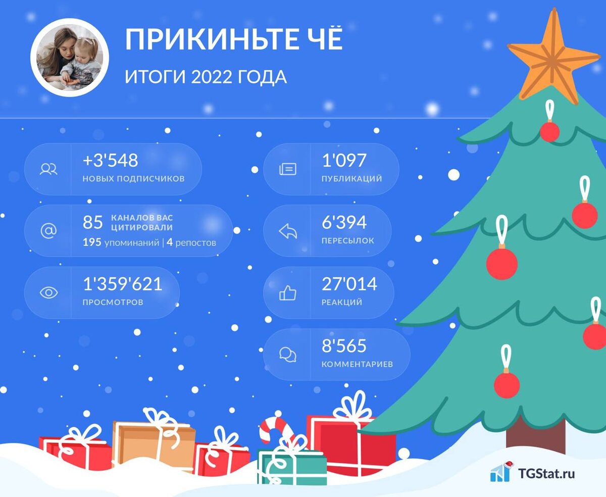 Можно сравнить свои с другими авторами и словить предновогоднюю депрессию, а можно сравнить со своими какое-то время назад и похвалить себя. В принципе, я очень советую делать так при любых подведениях результатов. Смотрите на себя в прошлом, а не на кого-то. Вводные у всех могут быть разные, а еще ситуации и обстоятельства. Более того, в соцсетях мы видим ровно то, что нам позволяют увидеть. И большое спасибо моим дорогим читательницам. Я очень ценю ваше доверие.