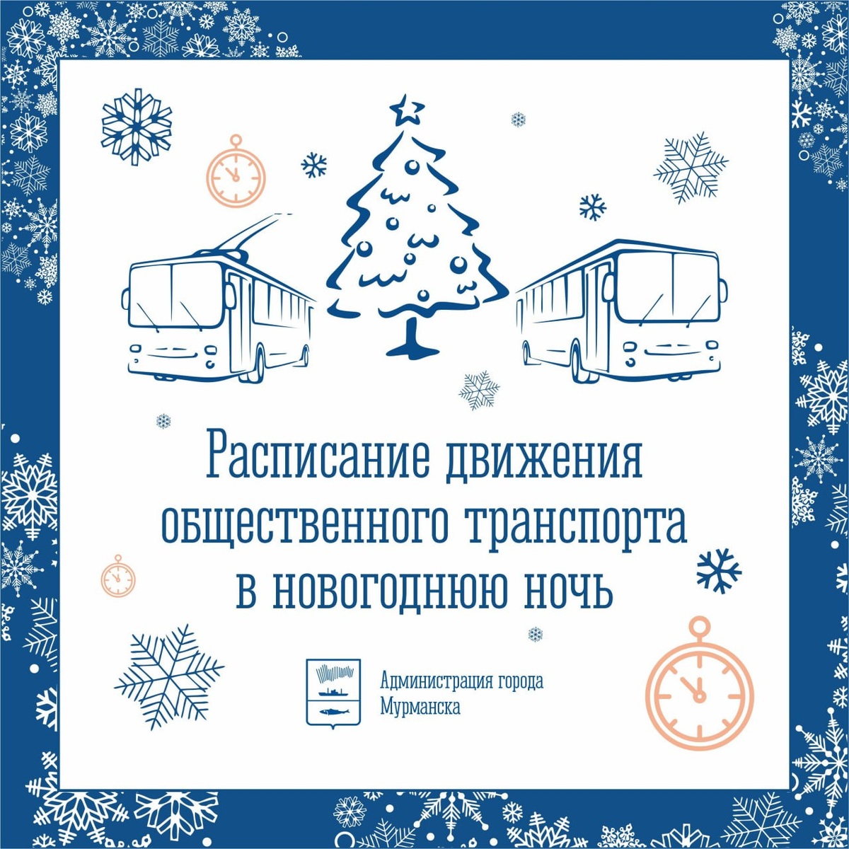 Для удобства жителей и гостей города в новогоднюю ночь будет курсировать общественный транспорт. Расписание в карточках Администрации города Мурманска. 🚎 С полным расписанием общественного транспорта на 31 декабря и 1 января можно ознакомиться на официальном сайте АО «Электротранспорт».