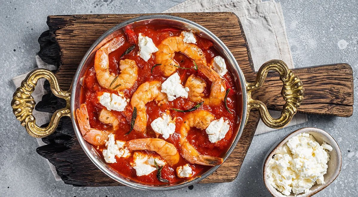 🧀 Сочные креветки в ароматном томатном соусе с расплавленной фетой — настоящая греческая классика! Что понадобится (на 4 порции): * креветки крупные — 24 шт.; * лук репчатый — 1 шт.; * чеснок — 2 зубчика; * помидоры консервированные — 500 г; * орегано сушёный — 1 ч. л.; * сыр фета или брынза — 100 г; * петрушка (веточки) — несколько шт.; * оливковое масло — по вкусу; * соль — по вкусу. Как готовить: 1. Очистите креветки, надрежьте спинку и удалите кишечник. Замочите в рассоле (2 ст. л. соли на 1 л воды) на 15 минут. 2. Обжарьте мелко нарезанные лук и чеснок в оливковом масле до прозрачности. 3. Добавьте помидоры, соль и готовьте 15–20 минут на среднем огне, разминая помидоры лопаткой. 4. Снимите соус с огня, добавьте орегано. 5. Выложите часть соуса в форму для запекания, сверху разместите креветки, покройте оставшимся соусом. 6. Посыпьте раскрошенной фетой и запекайте при 220 °C 12–15 минут. 7. Подавайте, украсив петрушкой. ✨ Идеально с хрустящим хлебом — чтобы собрать весь соус!