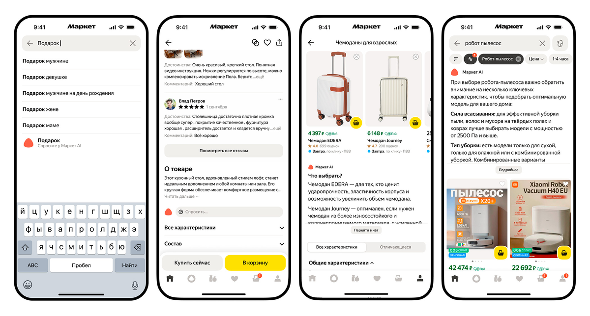 Весной 2025 года Маркет первым среди российских маркетплейсов запустил чат с ИИ‑агентом для покупателей. Он работал как персональный консультант: понимал текстовые запросы, анализировал характеристики и отзывы, помогал сравнивать товары и находить подходящие варианты.