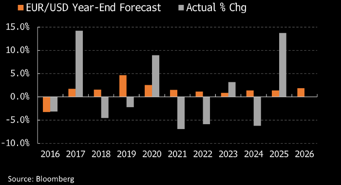 Bloomberg: прогноз на снижение курса доллара в 2026 году может не сбыться
