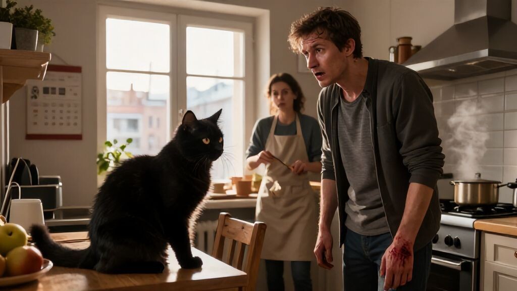 Анна улыбнулась, но улыбка вышла натянутой. Кот мяукнул требовательно, потянувшись лапой к столу. Максим протянул руку, чтобы погладить его, но зверь внезапно выгнул спину и цапнул когтями за пальцы. Кровь выступила тонкой струйкой.