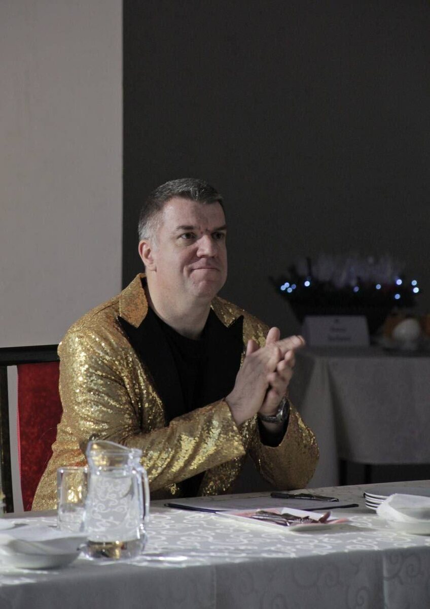 … Итак, друзья! Кто бы мог подумать, что обычный золотой пиджак способен изменить мир моды быстрее, чем любая коллекция Dolce & Gabbana! Все началось с Антона Гавриловича, чей золотистый наряд стал символом уверенности и стиля. Но вот сюрприз - вслед за ним этот стильный выбор оценили многие звезды российского шоу-бизнеса. Теперь вы можете увидеть Прохора Шаляпина, Игоря Николаева, Дмитрия Маликова и даже Артемия Лебедева в золотых пиджаках! Это уже не просто одежда - это целое движение, объединяющее артистов разных поколений и жанров. Так что, дорогие друзья, если вы хотите идти в ногу со временем и выделяться среди толпы, вам срочно нужен... да-да, именно золотой пиджак.