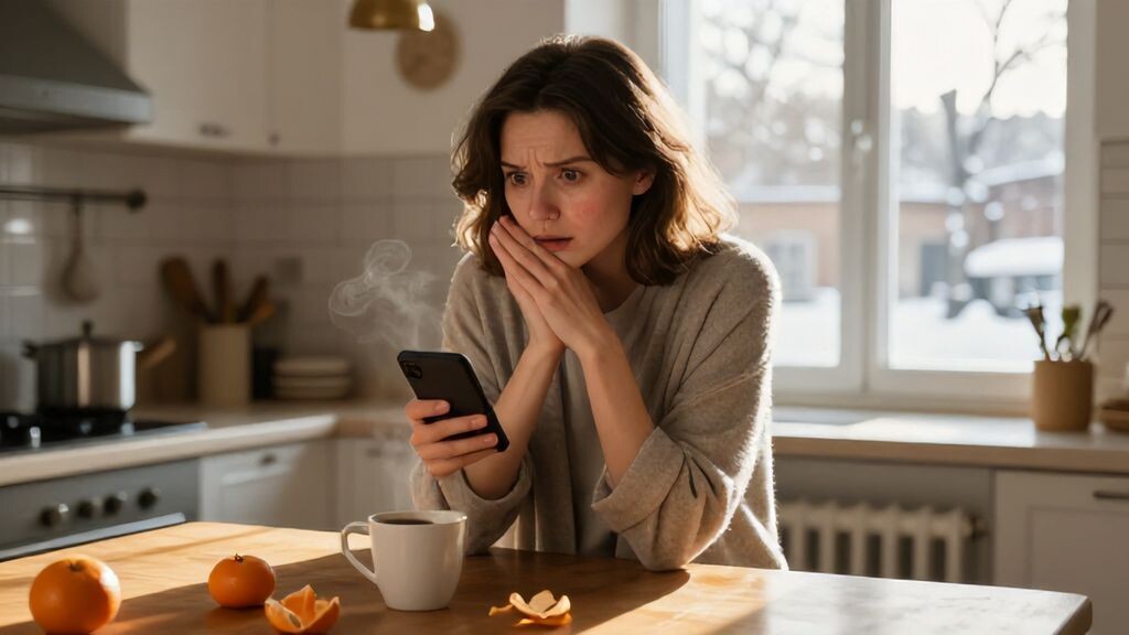 В кухне витал густой аромат свежесваренного кофе, смешанный с легкой кислинкой мандаринов, которые Анна чистила на деревянной доске. Утреннее солнце пробивалось сквозь тонкие занавески, отбрасывая золотистые блики на белую столешницу, усыпанную оранжевыми кожурами. Она стояла у окна, рассеянно глядя на двор, где соседские дети гоняли мяч по мокрой после ночного тумана траве. Телефон в кармане фартука завибрировал, и Анна вытерла руки о ткань, прежде чем ответить.