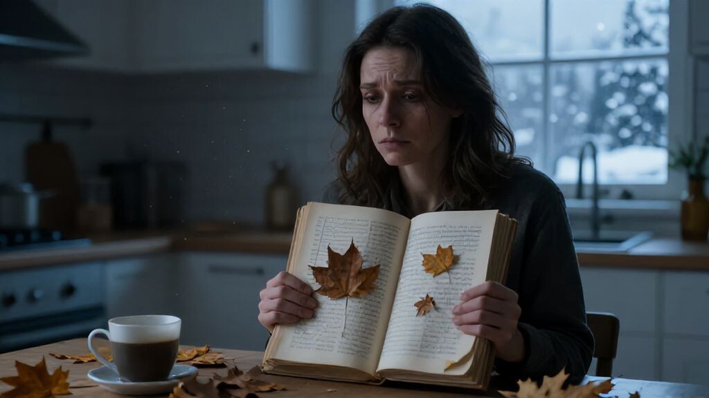 Анна была обычной женщиной тридцати пяти лет: бухгалтер в маленькой фирме, жена, мать пятилетней Маши. Её дни текли ровно, как река в межсезонье – без бурь, но с постоянным ощущением стоячей воды. Муж, Сергей, работал инженером на заводе, возвращался поздно, уставший, с запахом машинного масла на одежде. Они редко говорили по душам, но привычка держала их вместе, как клейкая лента. Всё изменилось два месяца назад, когда она нашла эту книгу в ящике его письменного стола. Открыла случайно, ища батарейки для фонарика. Листья – десятки сухих листьев, каждый с датой и временем, написанными её почерком, но чернилами, которых у неё никогда не было. Синие, дешёвые, из ручки, которую она видела только у него.