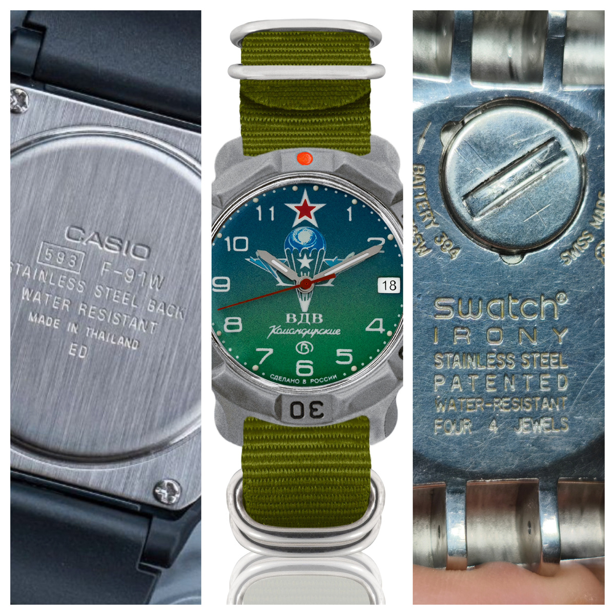 В часах с обозначением Water Resistant или Water Resist 30m допустимо только легкое погружение в небольшой фужер шампанского, также вы беспрепятственно можете выходить в легкий снегопад:
