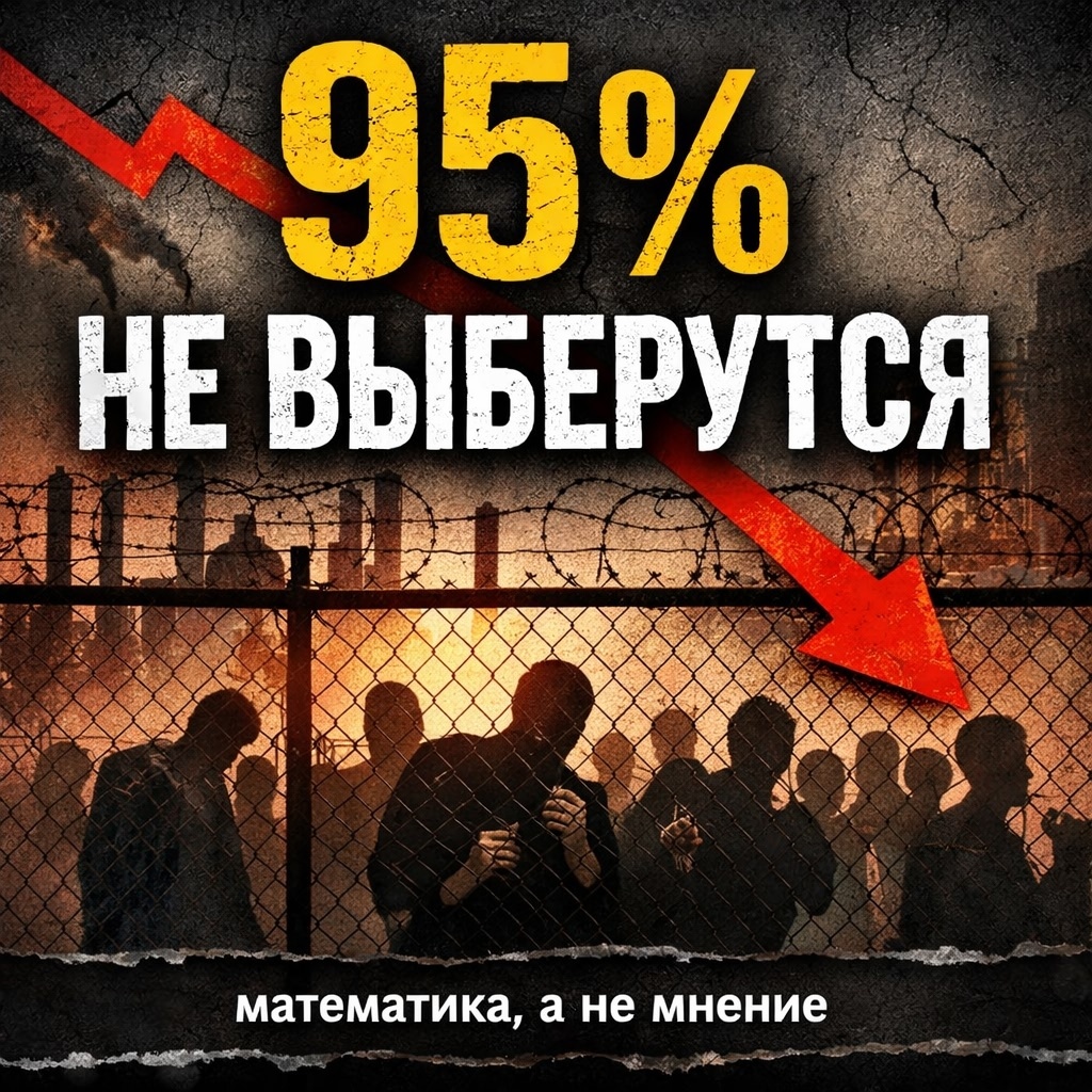 Это не мотивационный текст. Это не «возьми себя в руки». Это обычная математика, которую большинство предпочитает не считать. Если вы зарабатываете 35–70 тысяч рублей и живёте «нормально», но без накоплений — вы не исключение. Вы статистика. Средняя ЗП в России — 99к руб., но на выживание уходит 95%. 1. Зарплатная ловушка Средний доход тратится не на роскошь, а на выживание: Жильё: 20–30к руб. (ипотека/аренда) Еда: 15–20к руб. (семья из 2–3 чел.) Транспорт: 5–10к руб. (бензин/проезд) Связь + коммуналка: 5–8к руб. Кредиты: 10–15к руб. (средний долг россиян) Даже при дисциплине свободными остаются 5–10% (3–7к руб.), которые инфляция съедает за год. 2. Инфляция против человека Откладываете 5 000 руб./мес? Кажется, молодец. Но за 10 лет при 7% инфляции (прогноз 2025) 600к руб. превратятся в 305к руб. покупательной силы. Вы не копите. Вы медленно откладываете бедность. Накоплено за 10 лет - 600 000 руб. (номинал) При 7% инфляции - 305 010 руб. При 5% инфляции - 368 348 руб. Потер