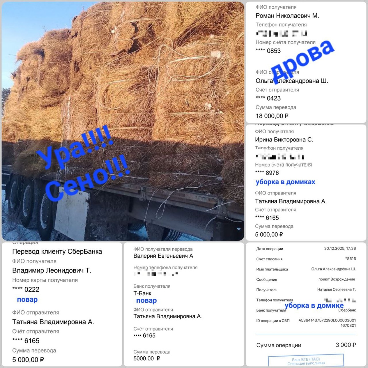 ✅ На вольеры, сено (солому) Мария Борисовна Т. карты Сбербанка, Т-банка, Альфа-банка по номеру телефона 8-916-793-11-25