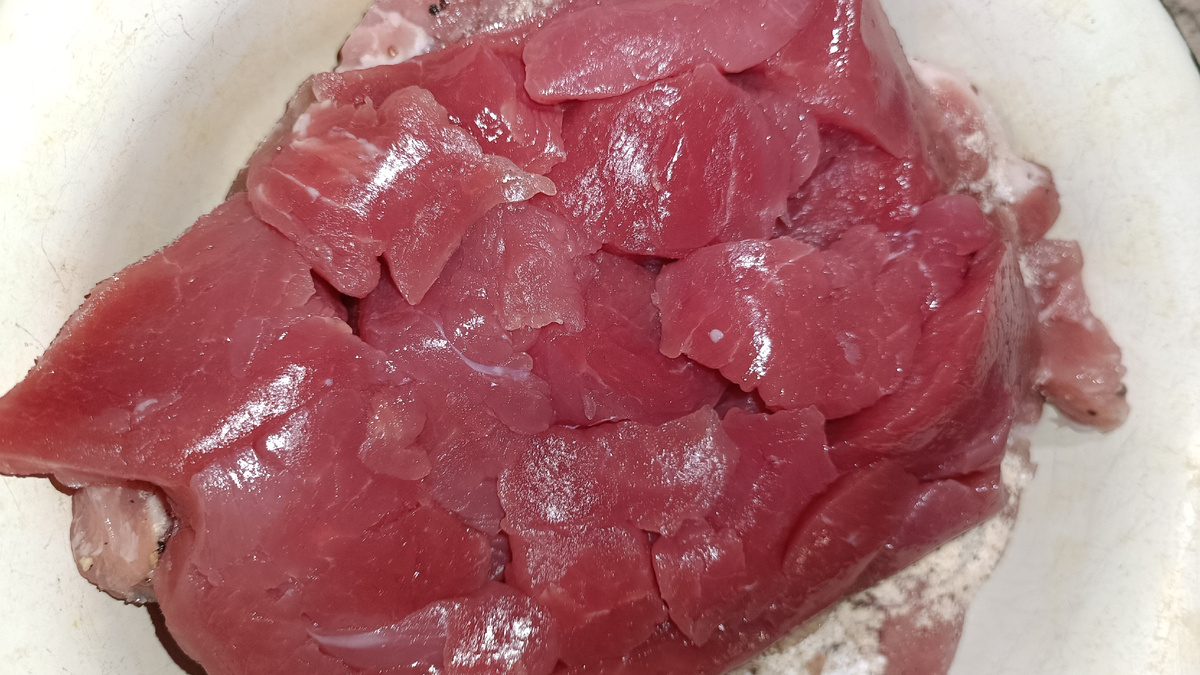 Берём карбонад и вырезку в любых пропорциях, режем на произвольные куски