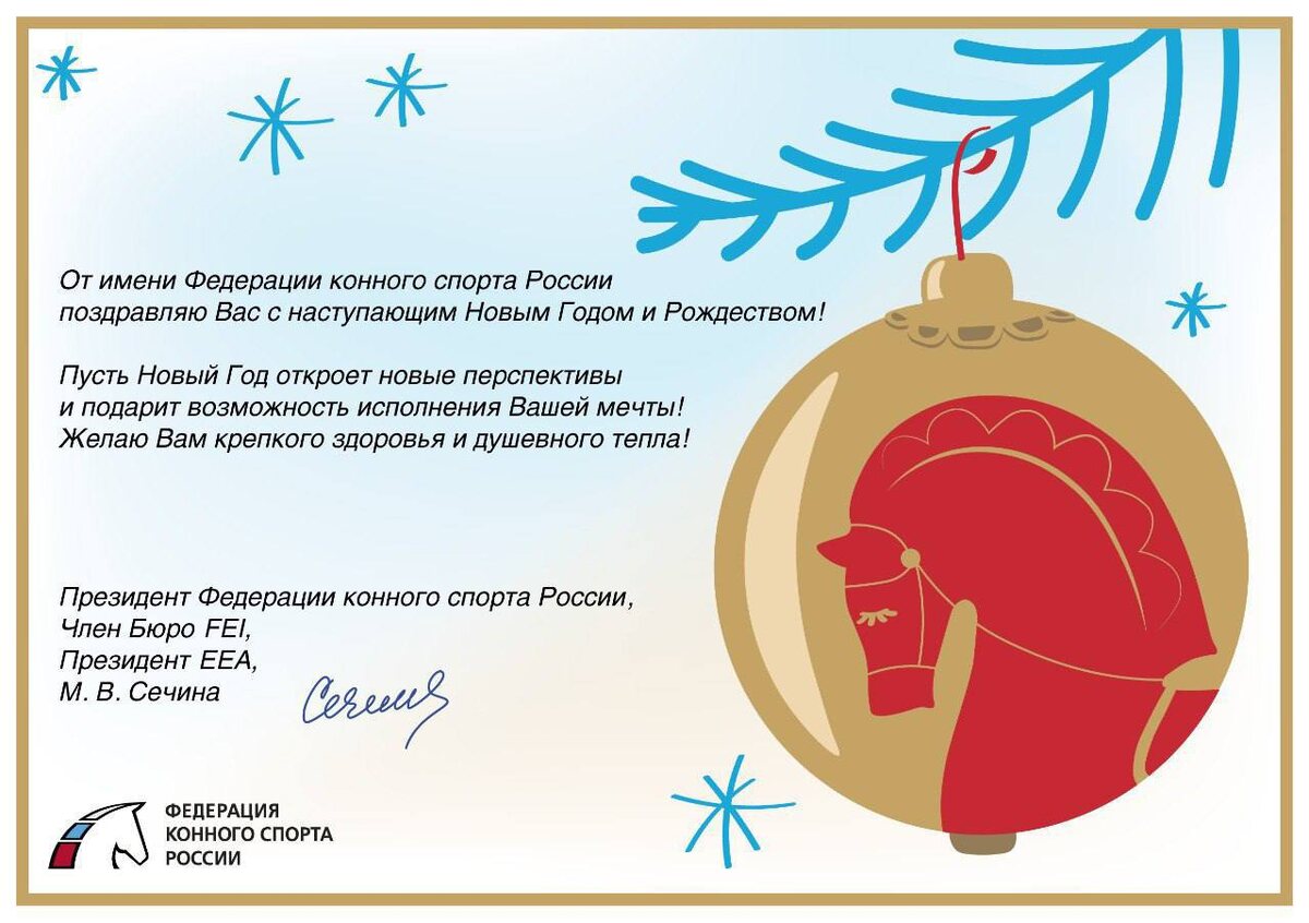 🐴 Президент Федерации конного спорта России Марина Сечина поздравляет всех с наступающим годом Лошади!