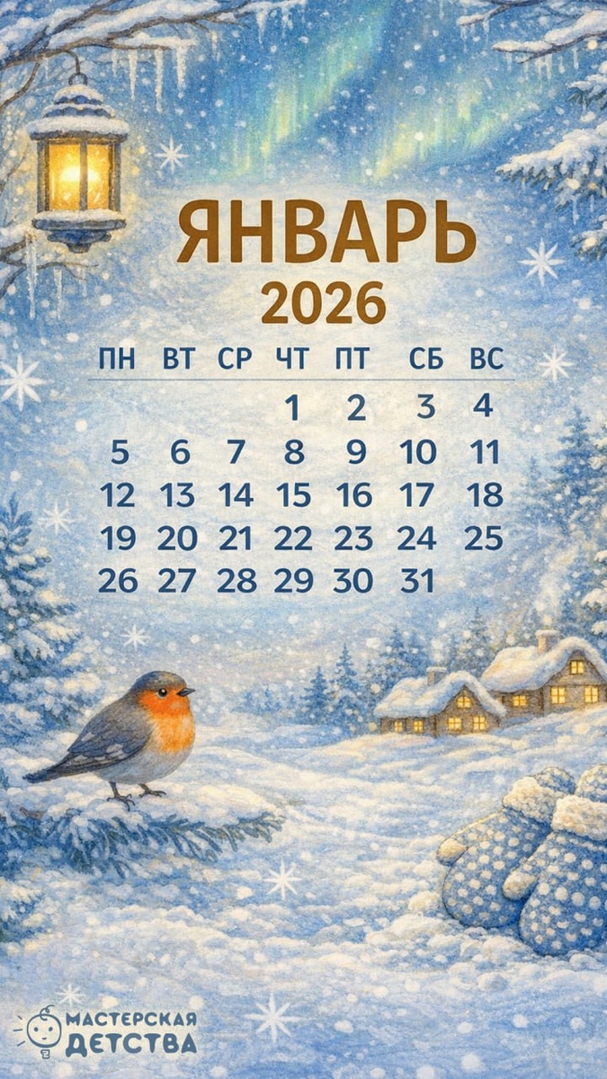 После праздников темп замедляется, дни становятся тише, а планы проще. Мы подготовили для вас зимний календарь на январь как тихую опору в начале года. Чтобы важные дела были под рукой, а между ними оставалось место для пауз, прогулок и тепла. Сохраняйте и входите в новый год в своём ритме 💜 #МастерскаяДетства