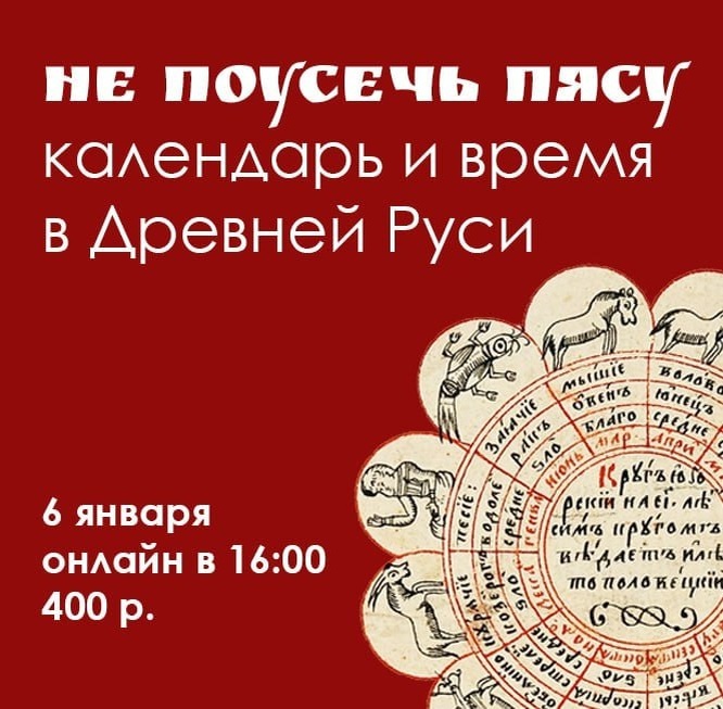 древнерусской культуры и искусства. 6 января в 16:00 будем смотреть древнерусские календари, метафоры дней сезонов и говорить о восприятии времени в древнерусской книжности. Zoom, записи навсегда. Для регистрации t.me/butski91