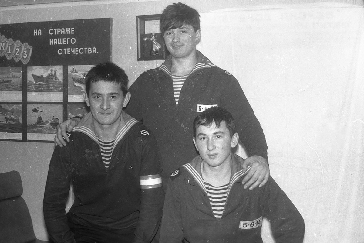 Матросы Тихоокеанского флота празднуют Новый год в 1988 года на борту ПКЗ-35 (плавказарма).