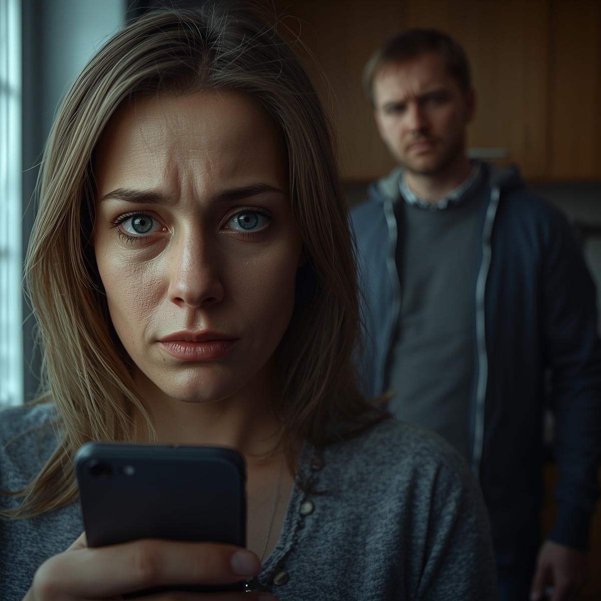 Марина не заметила, как вернулся муж. Он вышел из ванной и остолбенел, увидев её с его телефоном.