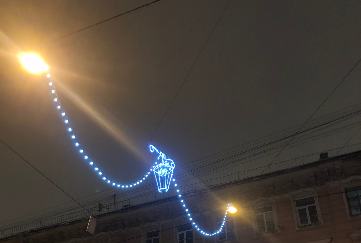 Пассажирка сломанного экипажа вышла на улицу, где горел своей магией фонарь.