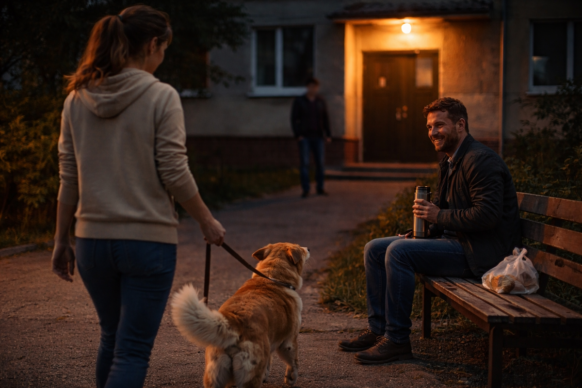 Они говорили долго. Без крика. Без спектакля. Я их видел издалека, потому что у меня тоже иногда бывает вечерняя прогулка, просто я выгуливаю не собаку, а голову.