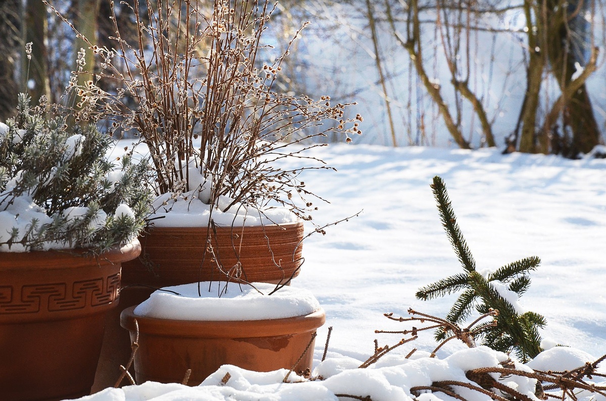 Контейнеры зимой: как горшки становятся дизайнерским элементом