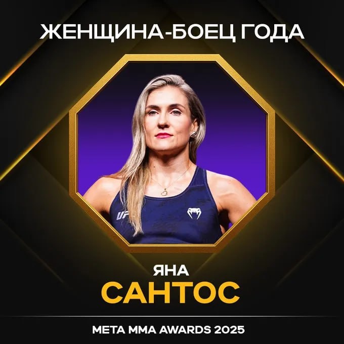 Meta MMA Awards подвели итоги в женской номинации, и победа досталась Яне Сантос. Российская спортсменка провела по-настоящему прорывной сезон и стала самой яркой девушкой-бойцом 2025 года. Впервые за карьеру в UFC, которая длится с 2018 года, Сантос выдала серию из двух громких побед. В 2025-м она одолела экс-чемпионку Мишу Тейт и опасную Мэйси Чиассон, уверенно заявив о себе в легчайшем весе. Эти успехи позволили Яне ворваться в топ-5 дивизиона UFC, что остается недостижимым результатом для других российских спортсменок. Итоги голосования: 🥇 Яна Сантос — 68 баллов 🥈 Наталья Кузютина — 51 🥉 Дарья Железнякова — 33 Несмотря на непростой год для женских ММА, Яна Сантос доказала, что способна конкурировать на самом высоком уровне и задавать тон всему дивизиону. 👊 Подпишись на Meta MMA | Meta MMA в MAX | Наш канал в ВК