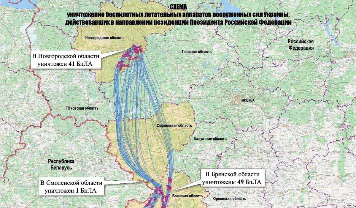 Карта атаки резиденции Путина опубликована Минобороны РФ