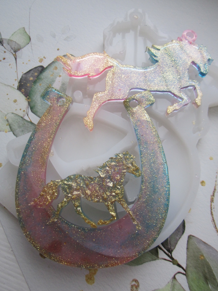 Ах, эпоксидная смола! Волшебный материал, который в руках умельца способен творить настоящие чудеса! Сегодня я хочу поделиться с вами секретами создания ярких и оригинальных украшений для новогоднего стола — лошади и подковы из эпоксидной смолы с блёстками. Эти магические фигурки не только преобразят ваш праздничный стол, но и, кто знает, может, принесут удачу в новом году! Итак, для этого новогоднего чуда нам понадобятся: А теперь — в бой! Начнём наше волшебное превращение: Смешивание эпоксидной смолы. Следуйте инструкции на упаковке, чтобы правильно смешать смолу и отвердитель. Аккуратно перемешайте смесь до однородного состояния — будто вы готовите эликсир вечной молодости! Добавление блёсток. Пока смола ещё жидкая, начинайте аккуратно капать на неё блёстки золотого цвета, и краску розового и голубого цветов. Можно чередовать цвета или создавать причудливые узоры — тут ваша фантазия главный судья! Заливка в формы. Медленно залейте смолу с в формы для лошади и подковы. Используйт