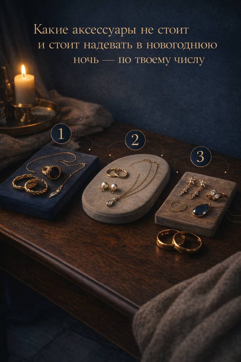 Если ты уже посчитала своё число, ищи свой вариант ниже 👇 Если пока нет, то пример рассета здесь 👉 https://dzen.ru/media/id/66a35a22561516089887ac1c/segodnia-ia-predlagaiu-tebe-poschitat-kakie-aksessuary-v-novogodniuiu-noch-tochno-ne-dlia-tebia-6954ae44069778267bf256e3 И да, это не про тренды и совсем не про то, что сейчас модно. Это про состояние, с которым ты войдёшь в новый год, и про то, как ты будешь чувствовать себя в эту новогоднюю ночь. 🔵🔵🔵🔵🔵🔵🔵 1️⃣ ❎ Не стоит: слишком простые, незаметные аксессуары, чтобы просто было. Например: тонкая цепочка, которую не видно, маленькие гвоздики без акцента, украшения без формы. ✅ Стоит: заметные детали: серьги с формой, акцентное кольцо, украшение с характером. Тебе важно чувствовать свою силу и инициативу, а не прятаться за образ. 2️⃣ ❎ Не стоит: жёсткие, тяжёлые, агрессивные аксессуары. Например: массивные цепи, украшения с острыми углами, слишком тяжёлые серьги, которые давят и тянут вниз. ✅ Стоит: плавные формы, мягкие