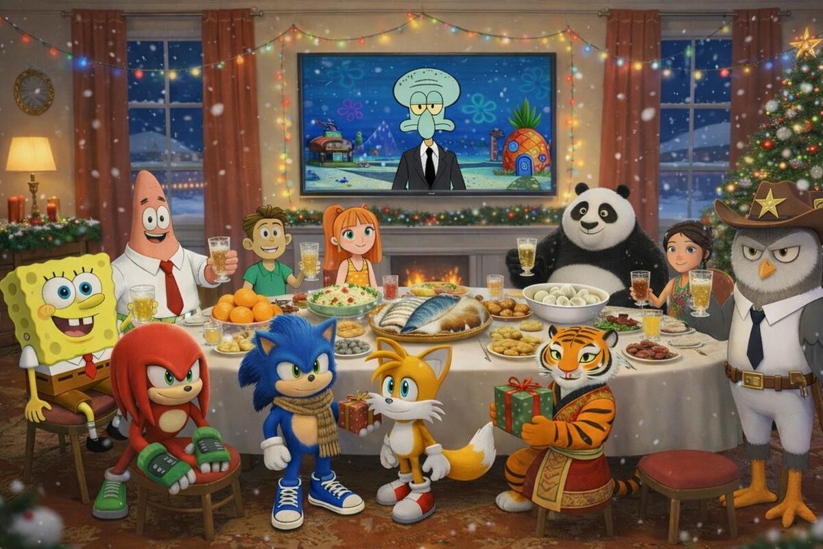 , чтобы праздновать на несколько часов дольше! Пусть следующий год принесёт вам тонну мемов, радости и столько крутого контента, чтобы телевизоры и ноутбуки дымились от нагрузки! А ещё желаем, чтобы символом 2026-го оказался Юлий из «Богатырей», а не депрессивный БоДжек из той самой сцены в баре. Будьте счастливы и помните, что всё равно 2х2! И не забудьте включить наш эфир! Через 5 минут жители Владивостока смогут увидеть большой сольный концерт Cream Soda, а после — присоединиться к длительному анимационному марафону, который не прекратится даже после новогодних