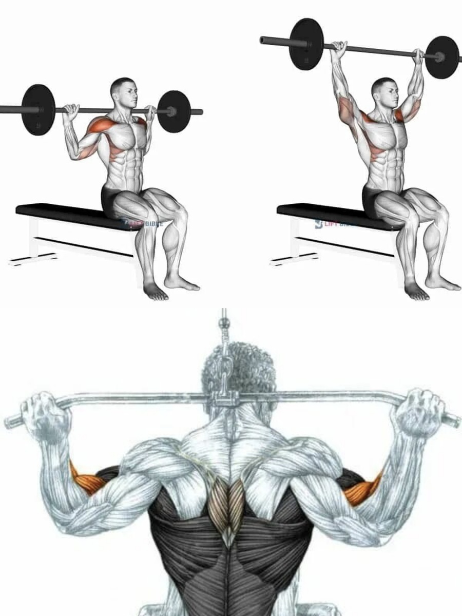 1️⃣ Жим штанги из-за головы и тяга за голову